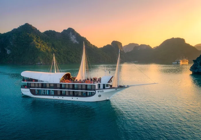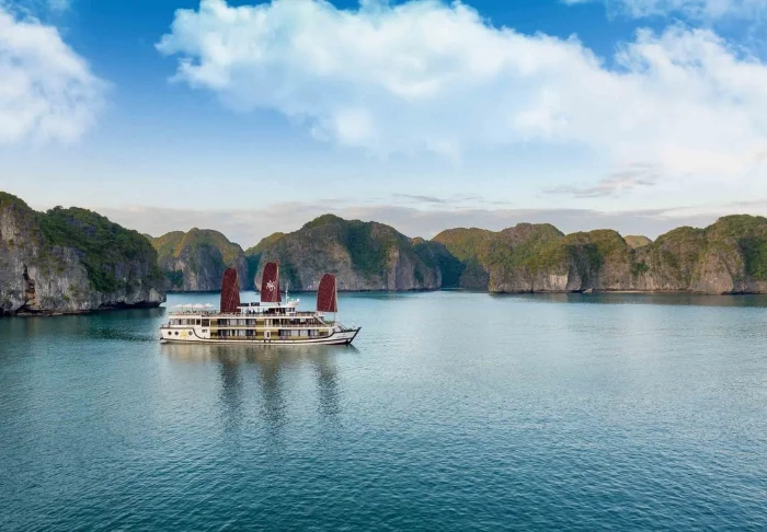 De Dragon Legend Cruise vertrekt vanuit de haven van Hon Gai in Ha Long en neemt u mee op avontuur door de Bai Tu Long baai. Hier vaart u langs duizenden kalkstenen eilanden en afgelegen lagunes, ver weg van de drukke vaarroutes. De sfeer aan boord is ontspannen en exclusief, ideaal voor reizigers die rust zoeken én toch verbinding willen ervaren.