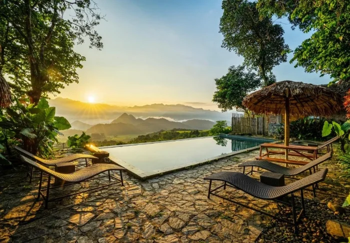 Het resort beschikt over twee infinity-zwembaden die tegen de berghelling liggen, met uitzicht op de rijstterrassen en de vallei beneden. Neem een verfrissende duik na een dag wandelen door het natuurreservaat, of kom tot rust aan de rand van het zwembad en geniet van het indrukwekkende berglandschap. Eén zwembad ligt vlak bij het restaurant en fungeert overdag als natuurlijke ontmoetingsplek, terwijl het andere iets meer afgelegen is – ideaal om in alle rust van de omgeving te genieten. Bij het zwembad bevindt zich ook een bar waar u een drankje of een kop koffie kunt bestellen.