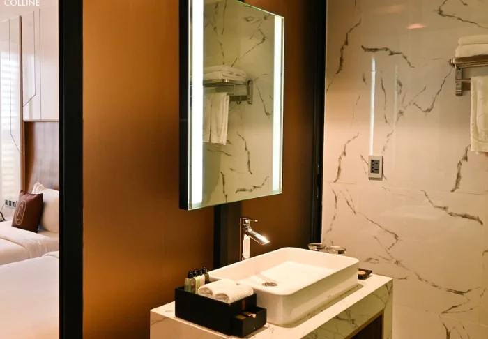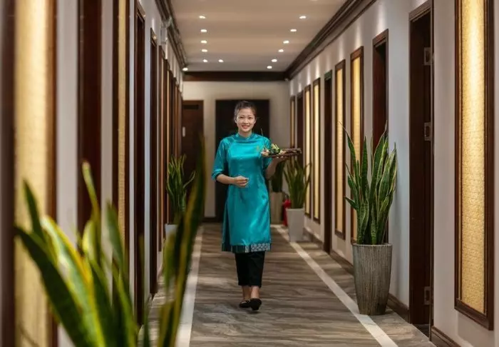 Het hotel combineert modern design met Vietnamese elementen en creëert zo een uitnodigende setting voor iedereen die hoge kwaliteit zoekt zonder midden in het hart van de stad te verblijven.