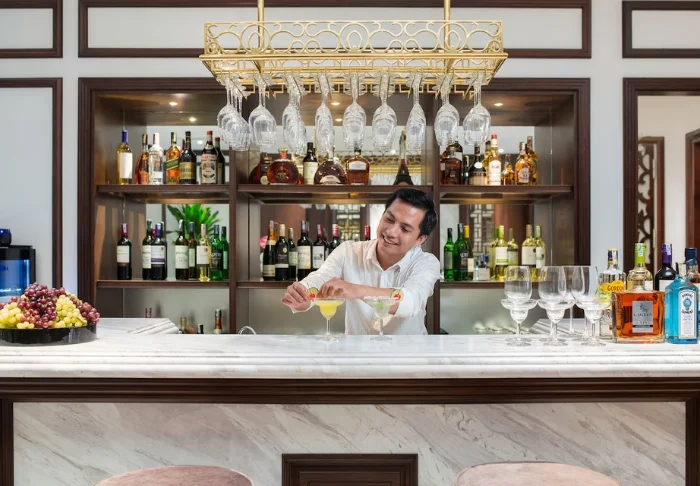 Het hotel beschikt daarnaast over verschillende bars, elk met een eigen karakter: Le 10° 19′ 44″, een tropische tuinbar met een ontspannen sfeer waar u de huiscocktail “Planteur de la Patronne” kunt proberen, en La Manufacture d’Opium, een lounge in Indochinese stijl met een nostalgische ambiance waar u wegzakt in leren stoelen en geniet van een glas Ricard, Khmer rum of een exotische cocktail.