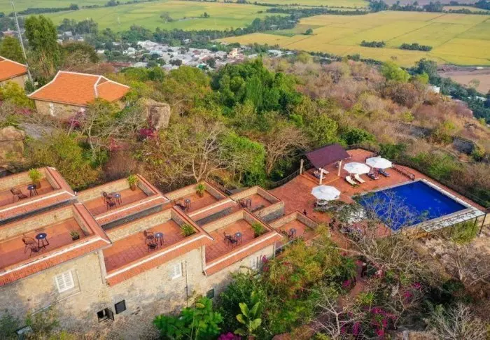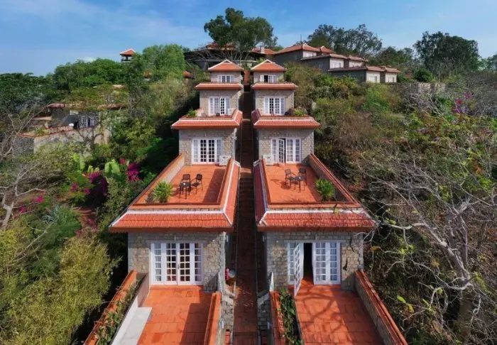 Hier liggen 26 bungalows die gebouwd zijn van steen, zodat ze op natuurlijke wijze bijna opgaan in de berghelling. Alle kamers zijn modern en minimalistisch ingericht, met vooral steen en hout. De kleuren zijn gedempt en passen bij goed bij de kleuren die te zien zijn door de ramen. Alle kamers hebben een eigen badkamer en toilet, tv, minibar, föhn, thee- en koffiefaciliteiten en toegang tot een terras. De zonsopgangen en zonsondergangen zijn magisch bij dit hotel. De lodge heeft een zwembad en eigen restaurant.