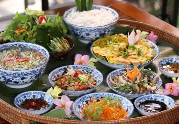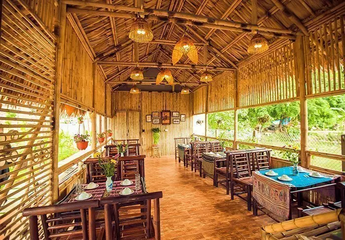 Het restaurant serveert gerechten met lokale ingrediënten uit de streek en biedt klassieke Vietnamese specialiteiten met verse kruiden, vis en fruit uit de delta. Veel van de producten komen rechtstreeks uit de eigen tuin van het hotel. Terwijl u geniet van uw maaltijd, kijkt u uit over de rivier en ziet u de zon langzaam achter de palmbomen verdwijnen.