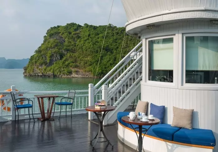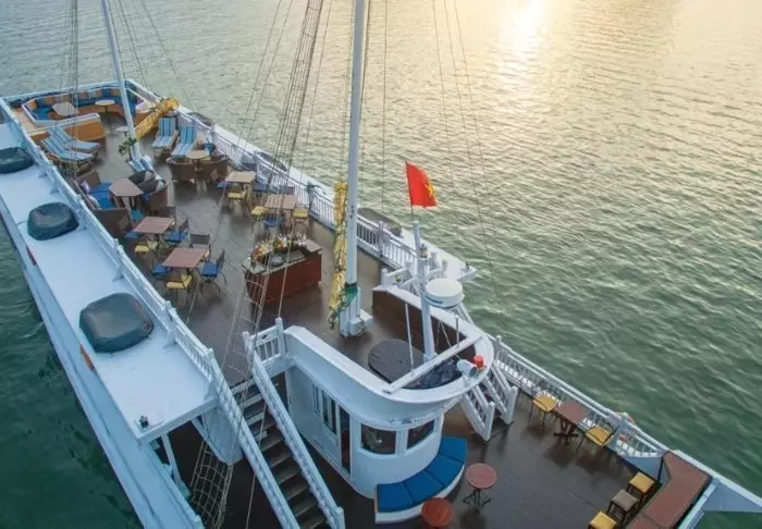Op het 5-sterrenschip Paradise Sails kunt u de magische natuur van de Ha Longbaai vanaf de eerste rang bewonderen.
