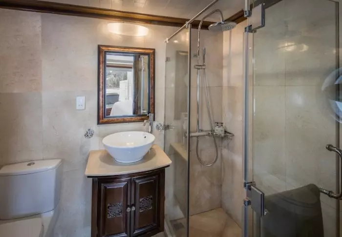 U overnacht in een deluxe hut met zeezicht op het beneden dek, met grote ramen die een prachtig uitzicht op de baai bieden—ideaal om wakker te worden met de eerste zonnestralen en ’s avonds in slaap te vallen op het zachte geluid van de zee. De hut is 20 m² groot en voorzien van een tweepersoonsbed of twee eenpersoonsbedden, airconditioning, minibar, TV, kluisje en een eigen badkamer met douche. Er is plaats voor twee volwassenen en één kind.