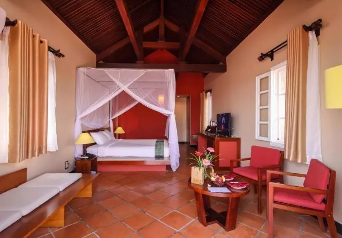 Het resort is gebouwd in elegante Franse koloniale stijl en is omgeven door tropische tuinen. De elegante Franse stijl komt terug in de 70 smaakvol ingerichte kamers, allemaal met wifi, airconditioning, kluisje, tv, koelkast, minibar, thee- en koffiefaciliteiten en een badkamer. Van het balkon heeft u uitzicht op de mooie tuinen.