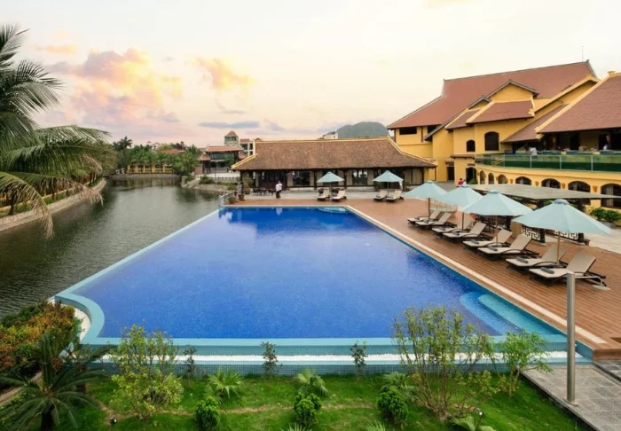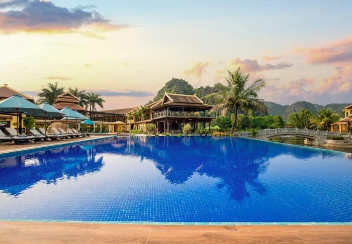Emeralda Resort Tam Coc ligt bij de aanlegsteiger van Tam Coc, waar het kenmerkende landschap van rijstvelden en kalksteenbergen zich ontvouwt. Het centrum van Tam Coc ligt direct buiten het resort, met cafés, restaurants, bars en kleine winkeltjes op loopafstand.