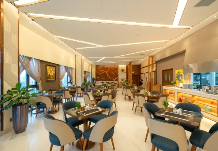 Het ontbijt wordt geserveerd in het Panorama Restaurant op de 16e verdieping, waar een uitgebreid buffet met zowel Vietnamese als internationale gerechten op u wacht, vergezeld met een schitterend panoramisch uitzicht over de stad. Het restaurant serveert ook lunch en diner, voor wie na een dag vol ontdekkingen liever in het hotel dineert.