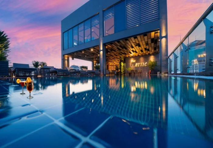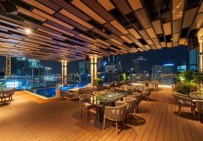 Het absolute hoogtepunt van het hotel bevindt zich op de bovenste verdiepingen: een dakterras met zwembad en een adembenemend uitzicht over de skyline van de stad. Hier vindt u ook een bar waar u met een drankje heerlijk kunt ontspannen. Daarnaast beschikt het hotel over een fitnessruimte met moderne voorzieningen.