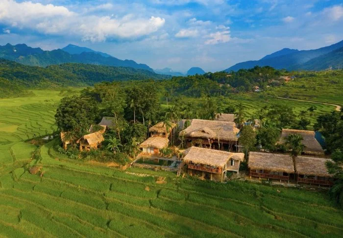 PuLuong Natura ligt in het hart van het rustige Pu Luong-gebied, waar de rijstterrassen in golven naar de weelderig begroeide bergen lopen. Vanuit het hotel leiden kleine paadjes door het omliggende landschap, en op loopafstand vindt u gezellige cafés en kunt u het alledaagse dorpsleven van dichtbij meemaken.