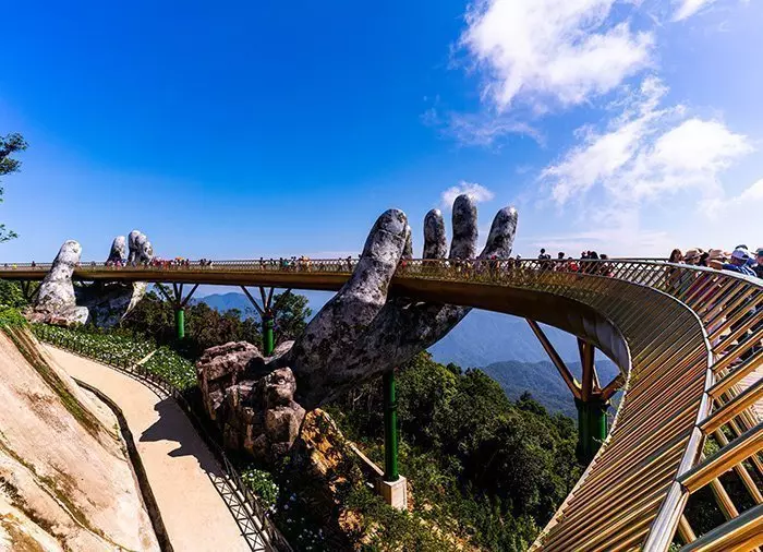De gids haalt u ‘s ochtends op bij het hotel en na ongeveer 1,5 uur rijden komt u aan bij de kabelbaan, die u in 15 minuten naar een hoogte van 1400 meter brengt. Op de top wacht een indrukwekkend uitzicht, als de gouden brug plotseling tevoorschijn komt met, zwevend op twee grote handen uitgehakt in steen. De brug is voltooid in 2018 en werd snel wereldberoemd vanwege het spectaculaire ontwerp midden in een magisch berggebied, en zo ontworpen dat het lijkt alsof de handen van God een stukje van de aarde optillen, als een voetpad naar de hemel. Het gebied rond het tussenstation van de kabelbaan werd oorspronkelijk aangelegd door de Franse koloniale machthebbers in 1919, o.a voor de opslag van wijn omdat de temperatuur hier meestal 10 graden lager is dan aan de kust. Hier heeft u tijd om rond te wandelen in de prachtige en kleurrijke bloementuin, ook wel ‘Le Jardin d’Amour’ genoemd, de Tuin van de Liefde, waar ook een gigantische witte Boeddha uitkijkt over de bergkam en de weelderige heuvels. Vervolgens gaat u verder met de kabelbaan naar de top van de berg, waar u kasteeltorens ziet. U bevindt zich nu in het hart van het park en een sprookjesachtig landschap met verschillende thema’s ontvouwt zich, zoals het carnaval in Rio, een Frans dorpje, een Japans theehuis en nog veel meer. Hier heeft u vrij toegang tot de meeste attracties voor jong en oud. Na een heerlijke lunch kunt u zelf de attracties uitproberen, gewoon rondwandelen en genieten van de omgeving, souvenirs vinden of even uitrusten in een van de cafés en restaurants of in een rustig hoekje van het park, zoals bijv. bij de Linh Ung-pagode.