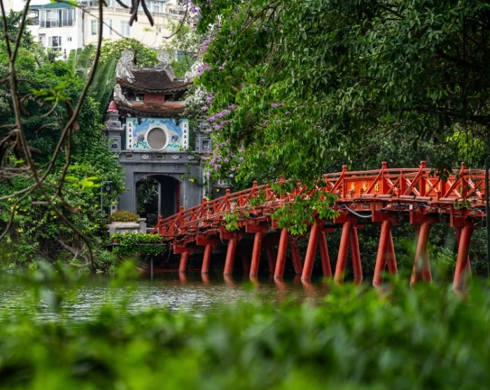 Vanaf hier steekt u de iconische Huc-brug over naar de Ngoc Son-tempel, gelegen midden in het schilderachtige Hoan Kiem-meer. De naam van de brug betekent letterlijk ‘de plek die wordt geraakt door de eerste zonnestralen’. Hier hoort u de legende van de keizer, het magische zwaard en de reuzenschildpad, en ontdekt u hoe het meer aan zijn naam is gekomen en wat het zo bijzonder maakt voor de stad.