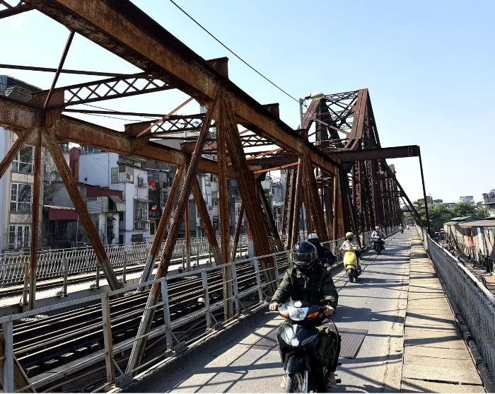 Na een spannende rit met de cyclo bezoekt u de historische Long Bien-brug, een iconisch symbool uit de Franse koloniale tijd, gebouwd aan het begin van de 20e eeuw. De karakteristieke ijzeren brug overspant de Rode Rivier en raakte zwaar beschadigd tijdens de Vietnamoorlog, maar staat tegenwoordig als een krachtig symbool voor de veerkracht en geschiedenis van Hanoi. Vanaf de brug krijgt u een levendig beeld van het alledaagse leven in de stad, waar inwoners met scooters, fietsen en te voet onderweg zijn van en naar hun werk. Als u naar beneden kijkt, ziet u de levendige Long Bien-markt, die al vroeg in de ochtend vol bedrijvigheid is, terwijl het uitzicht over de rivier een rustgevend contrast biedt met de energie van de stad. De brug is een geliefde plek voor fotografen en reizigers die de ziel van Hanoi willen vastleggen.
