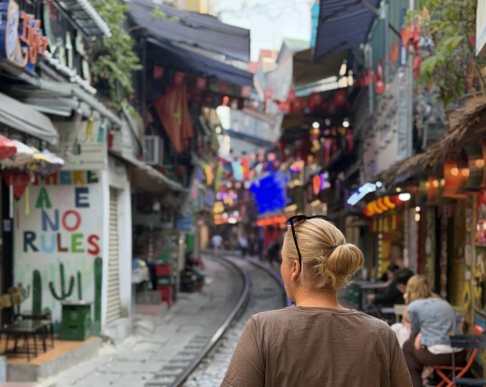 Begin de ochtend vroeg met een bezoek aan de beroemde Train Street, wanneer het nog rustig is en de sfeer ontspannen. Hier raast de trein vlak langs kleine cafés – een bijzonder tafereel dat u een uniek inkijkje geeft in het dagelijks leven voordat de stad echt ontwaakt.
