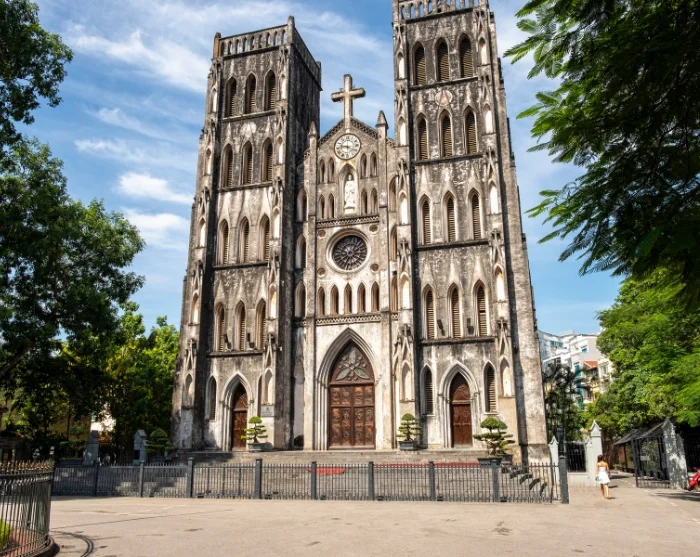 Ga daarna richting het schilderachtige Hoan Kiem-meer. De smalle straatjes en Franse koloniale gebouwen verbergen hier charmante winkeltjes, kleurrijke kunstgaleries en knusse cafés. Neem plaats met een Vietnamese koffie en geniet van het dagelijks leven dat aan u voorbijtrekt, terwijl locals en reizigers elkaar ontmoeten. Niet ver daarvandaan staat de iconische Sint-Jozefkathedraal – met haar gotische gevel en levendige plein is dit een geliefde ontmoetingsplek voor zowel inwoners als bezoekers.