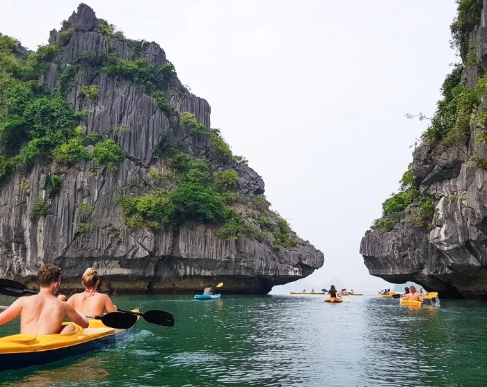 De ochtend begint met avonturen in het Tra Bau-gebied, waar u kunt kajakken en zwemmen. Dit gebied staat bekend om zijn adembenemende landschap en werd gebruikt als filmlocatie voor de film Kong: Skull Island.