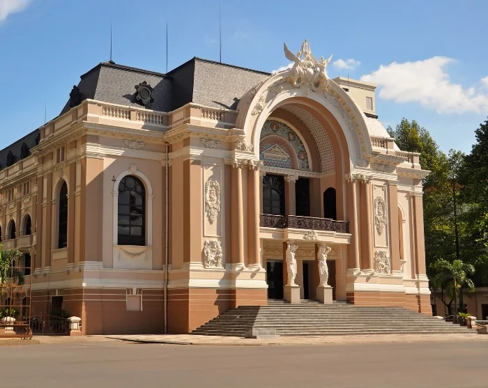 U passeert de Saigon Opera House, een architectonisch meesterwerk uit 1901 en een levendig symbool van het culturele erfgoed van de stad. Het gebouw heeft een bijzondere geschiedenis: van schuilkelder tijdens bombardementen tot het onderkomen van het lagerhuis van het Zuid-Vietnamese parlement.