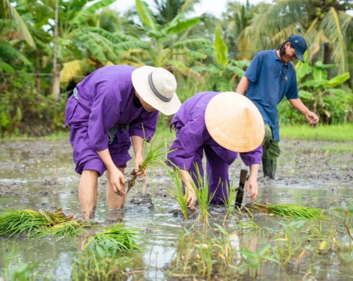 Uw reis gaat verder naar ons sociale duurzaamheidsproject in Vinh Long, opgezet door onze lokale partner. Tijdens een ontspannen wandeling door het dorp vertelt uw gids meer over het project. U krijgt ook de kans om het traditionele boerenleven van dichtbij te ervaren. Samen met lokale boeren kunt u zelf aan de slag met het verbouwen van rijst – ofwel het planten van jonge scheuten, ofwel het helpen bij de oogst, afhankelijk van het seizoen. Het is een verrijkende en nuchtere ervaring die u een authentiek beeld geeft van het dagelijkse leven op het Vietnamese platteland en het harde werk achter duurzame landbouw. Door aan deze reis deel te nemen, draagt u bovendien direct bij aan de gezinnen in Vinh Long, aangezien een deel van de reissom rechtstreeks naar het project gaat. Meer informatie over dit initiatief vindt u hier.