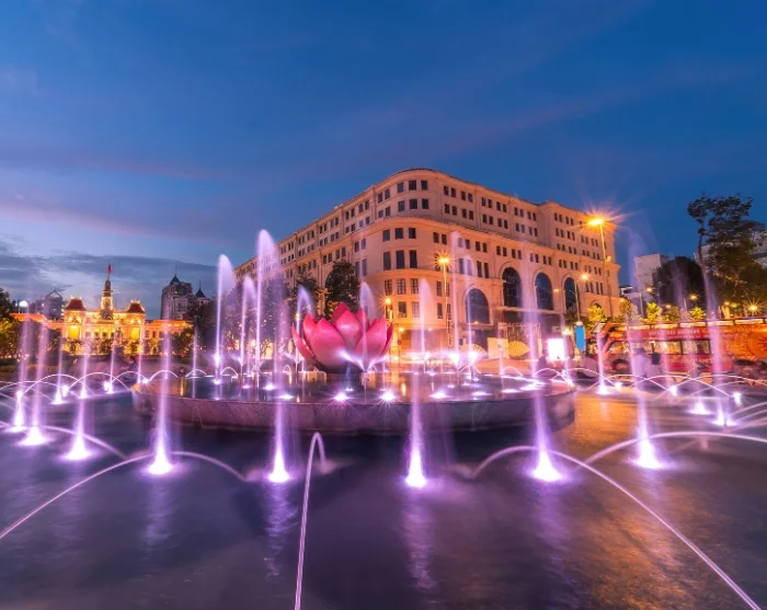 Rond schemertijd kunt u heerlijk flaneren over de Nguyen Hue-boulevard, die wordt omringd door bloemen, fonteinen en sfeervolle architectuur. Hier komt de stad echt tot leven: bewoners verzamelen zich met straatartiesten, dansers en jonge gezinnen voor een charmante, levendige mix. De sfeer is ontspannen maar energiek, en alles draait om het prachtig verlichte stadhuis van de stad.