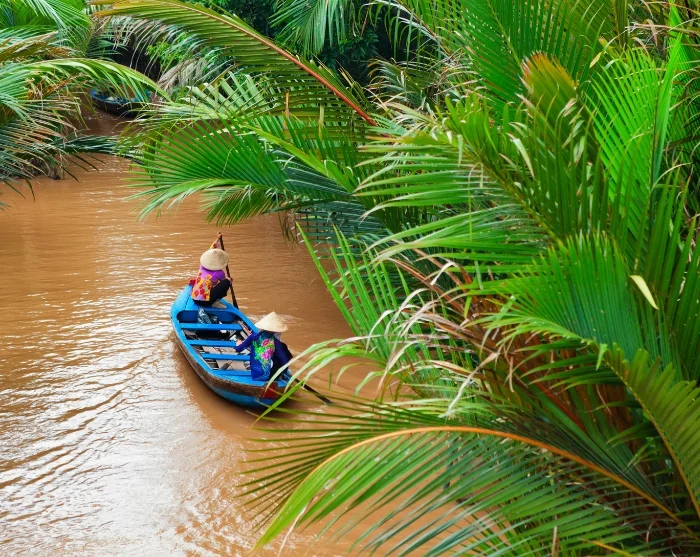 Na een rit van ongeveer 2½ uur komt u aan in het plaatsje Cai Be. Hier stapt u aan boord van een boot en begint uw tocht door de weelderige Mekongdelta. U bezoekt lokale werkplaatsen waar vakmensen allerlei producten van kokosnoot maken. Daarna gaat de reis verder in een kleine sampan – een traditionele houten roeiboot – waarmee u rustig door de smalle, kronkelende waterwegen van de Mekongdelta vaart.