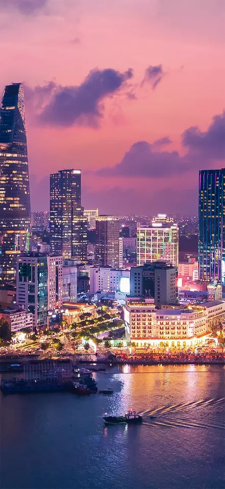 Na zonsondergang is dit het perfecte moment om de dag af te sluiten met een panoramisch uitzicht over de zee van stadslampen, vanaf een van de wolkenkrabbers zoals de Bitexco Financial Tower of Landmark 81.