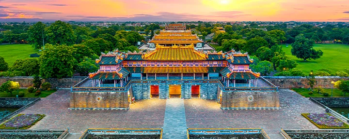 Daarna volgt een mini-cruise door de serene Bai Tu Long baai. Vaar tussen imposante kalkstenen rotsformaties door, verken mysterieuze grotten en geniet vanaf het dek van het betoverende landschap. Vervolgens vliegt u naar de keizerlijke stad Hué, waar u indrukwekkende mausolea, eeuwenoude pagodes en de oude citadel bezoekt.