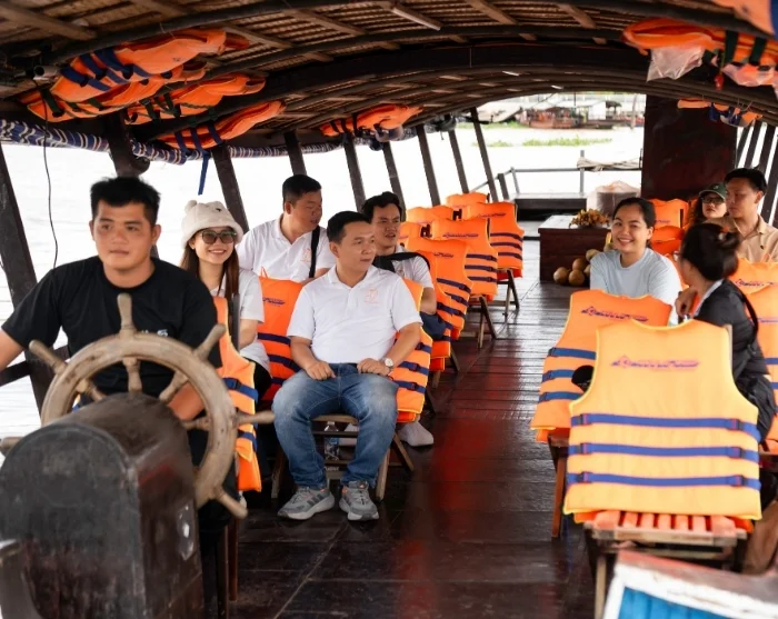 Uw avontuur gaat verder met een boottocht naar een rustig eiland midden in de Mekongrivier. Hier geniet u van een Vietnamese lunch, bereid met verse, lokale ingrediënten—omringd door weelderig groen en het rustgevende ritme van het leven aan de rivier.