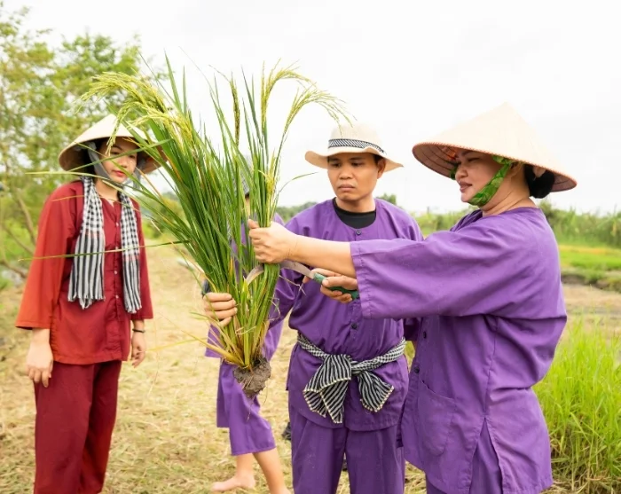 Daarna bezoekt u ons duurzaamheidsproject in Vinh Long, opgezet door onze lokale partner. U maakt een ontspannen wandeling door het dorp, waarbij uw gids onderweg uitgebreid vertelt over het initiatief. U krijgt bovendien de gelegenheid om het traditionele plattelandsleven van dichtbij mee te maken. Samen met lokale boeren mag u de handen uit de mouwen steken: afhankelijk van het seizoen helpt u met het planten van jonge rijstplantjes of met de oogst. Het is een boeiende, eerlijke belevenis, die u een uniek inkijkje geeft in het dagelijks leven op het Vietnamese platteland en het werk achter duurzame landbouw. Door deel te nemen aan deze reis steunt u bovendien de families in Vinh Long, want een deel van de reissom gaat direct naar het project. Hier leest u er meer over.