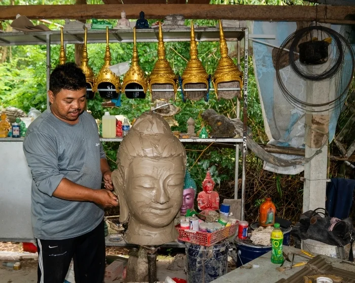 De reis gaat verder met een bezoek aan een getalenteerde Khmer-kunstenaar, die beelden en maskers maakt voor de pagodes in de omgeving.