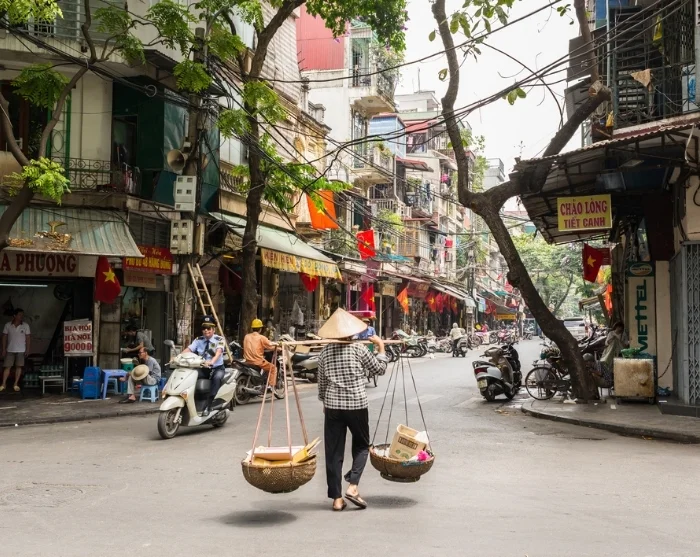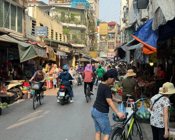 De tour gaat vervolgens verder per traditionele fietstaxi – lokaal bekend als cyclo – en slingert dwars door het labyrint van smalle straatjes en levendige markten van de oude wijk. De Oude Wijk staat bekend om haar 36 straten, die oorspronkelijk elk vernoemd zijn naar het type handel dat er gedreven werd: bamboe, zijde, papier en tin. Veel straten dragen nog steeds hun oorspronkelijke naam en de wijk barst van de lokale charme, met inwoners die boodschappen doen, buren die bijpraten, en stoomwolkjes van pho die opstijgen uit drukke straatkeukens.