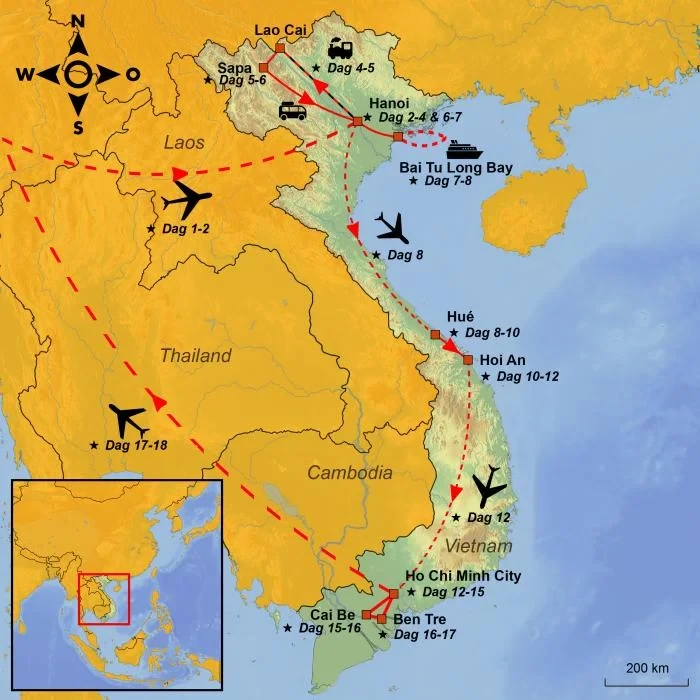 Ga mee op een avontuurlijke reis door Vietnam – van het bergachtige gebied bij Sapa en de levendige hoofdstad Hanoi tot eeuwenoude keizerlijke steden, sfeervolle kustplaatsen, het weelderige Mekongdelta en de bruisende metropool Ho Chi Minhstad in het zuiden.