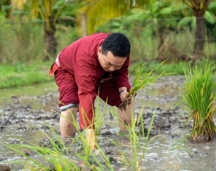 Daarna brengt uw reis u naar ons sociaal duurzaamheidsproject in Vinh Long, opgezet door onze lokale partner. U maakt een ontspannen wandeling door het dorp, waarbij uw gids onderweg meer vertelt over het project. U krijgt bovendien de kans om het traditionele plattelandsleven van dichtbij te ervaren. Samen met lokale boeren gaat u aan de slag op de rijstvelden afhankelijk van het seizoen helpt u mee met het planten van jonge stekjes of juist met de oogst. Deze praktische en verrijkende activiteit biedt een uniek inkijkje in het dagelijkse leven op het Vietnamese platteland én in de toewijding waarmee duurzame landbouw wordt bedreven. Uw deelname aan deze reis ondersteunt bovendien families in Vinh Long, want een deel van de reissom gaat direct naar het project. Meer informatie hierover vindt u hier.