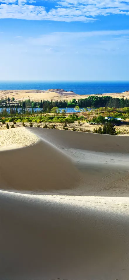 De omgeving is vooral bekend om zijn indrukwekkende zandduinen, die door de zeewind steeds worden gevormd tot golvende landschappen die aan de Sahara doen denken.