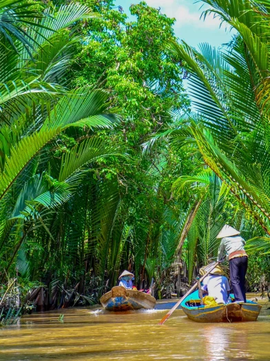 Na ongeveer 2,5 uur rijden komt u aan in het plaatsje Cai Be. Hier stapt u aan boord van een boot en begint uw ontdekkingstocht door de weelderige Mekongdelta. U bezoekt lokale werkplaatsen waar vakkundige ambachtslieden producten van kokos maken. Vervolgens vaart u verder in een kleine sampan – een traditionele, met de hand geroeide houten boot – waarmee u dwars door de smalle, kronkelende waterwegen van de Mekongdelta glijdt.