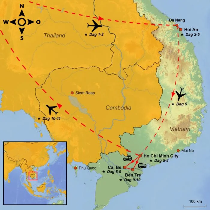 De reis kan worden verlengd met een ontspannende strandvakantie in Mui Ne, op het eiland Phu Quoc, of met een verblijf in Siem Reap inclusief een bezoek aan Angkor Wat.