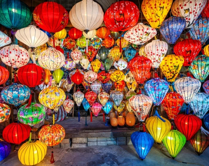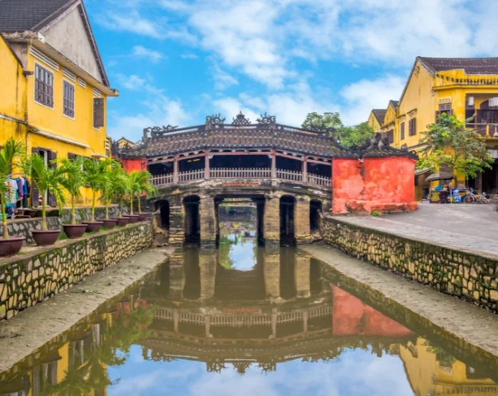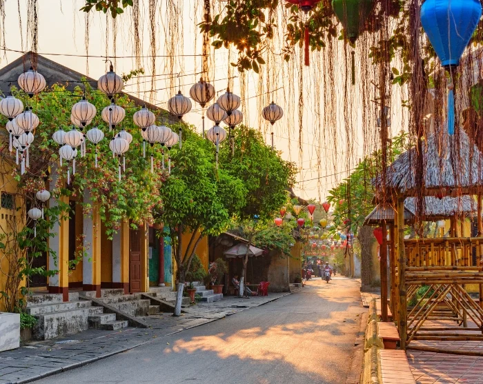 Voorbij de rivier vindt u een doolhof van sfeervolle, smalle straatjes vol met een kleurrijke mix van Japanse houten huizen, Chinese vergaderzalen, Franse koloniale gebouwen en karakteristieke koopmanswoningen. Over de straten hangen slierten met kleurrijke lantaarns, die vooral ’s avonds voor een betoverende sfeer zorgen. Winkels, eetkraampjes, cafés en kleine restaurants liggen als kralen aan een snoer langs de straten en nodigen uit om op uw gemak te ontdekken en te genieten.