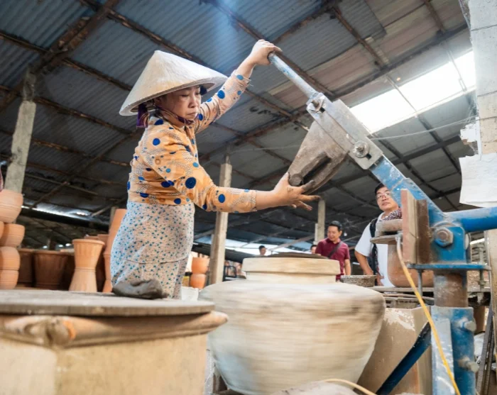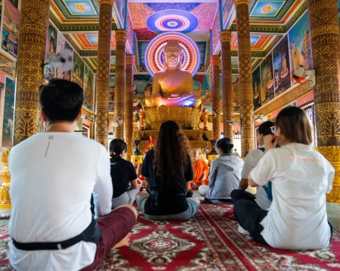 Vandaag krijgt u een bijzondere inkijk in het dagelijks leven en de ambachtelijke tradities van de kleine plattelandsgemeenschappen rond Tra Vinh. Tra Vinh is een rustige en authentieke provincieplaats in de zuidelijke Mekongdelta, waar een grote Khmer-bevolking woont. De kleurrijke pagodes, het rustige tempo en de spirituele sfeer geven de stad haar eigen karakter en vormen het decor voor de ervaringen van vandaag.