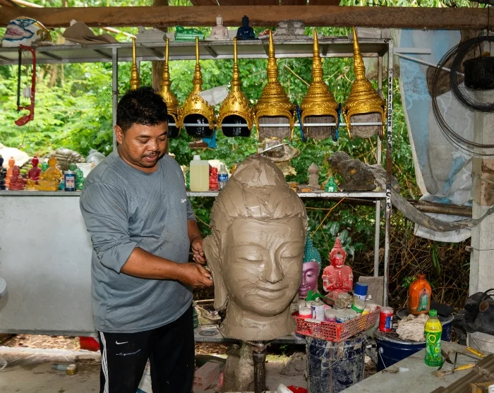 De reis gaat verder met een bezoek aan een bekwame Khmerkunstenaar die beelden en maskers vervaardigt voor de pagodes in de omgeving.