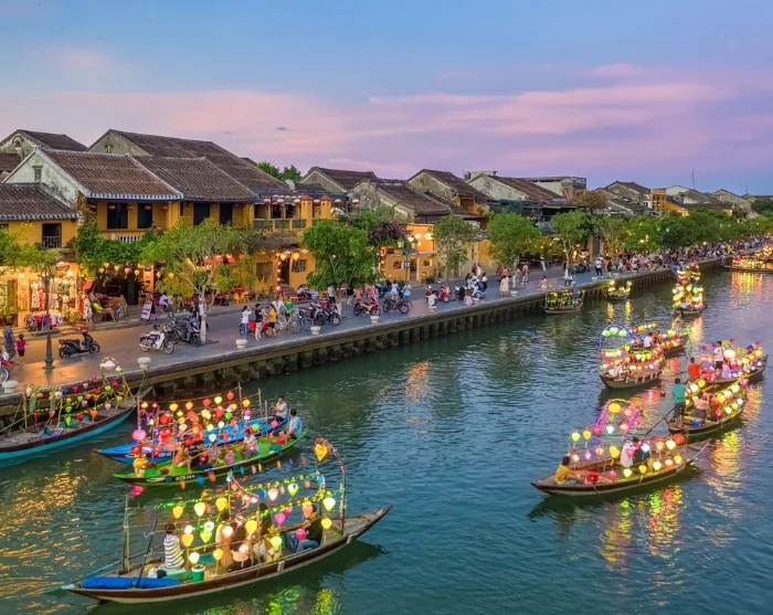 De reis begint in Centraal-Vietnam, in het charmante stadje Hoi An, waar kleurrijke lantaarns, historische handelshuizen en smalle straatjes het decor vormen voor uw eerste indrukken. U heeft hier ruim de tijd om het tot UNESCO-werelderfgoed verklaarde oude stadsgedeelte te verkennen, te ontspannen op het strand of deel te nemen aan een van de lokale excursies in de omgeving.