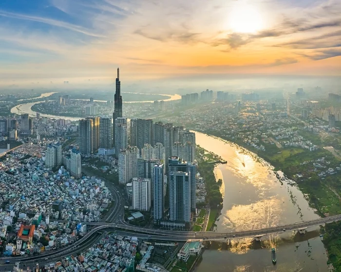 Na zonsondergang is het de ideale tijd om de dag af te sluiten met een spectaculair uitzicht op de zee van lichtjes vanuit een van de wolkenkrabbers van de stad – bijvoorbeeld vanaf de Bitexco Financial Tower of Landmark 81.