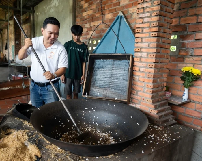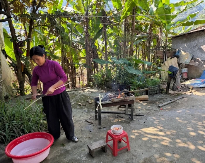 De fietstocht gaat verder naar een lokaal familiehuis in het dorp Mai Trung, waar u hartelijk wordt ontvangen. Hier krijgt u een inkijkje in het plattelandsleven en kunt u deelnemen aan seizoensactiviteiten zoals werken op de rijstvelden, tuinieren of het voeren van vissen en pluimvee.