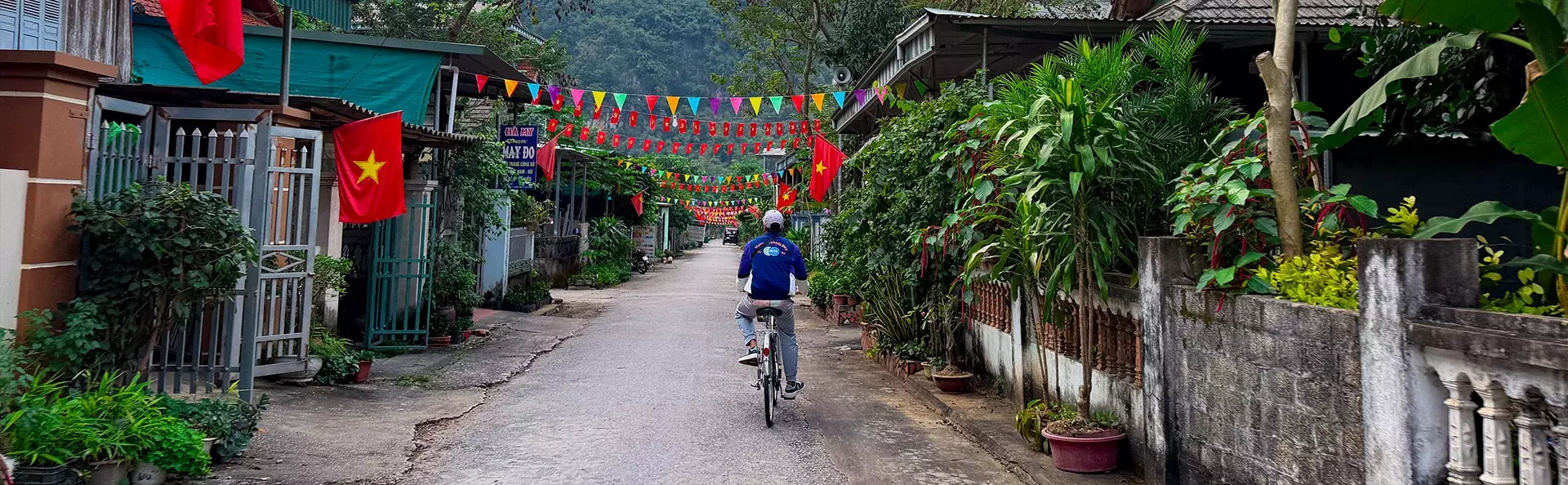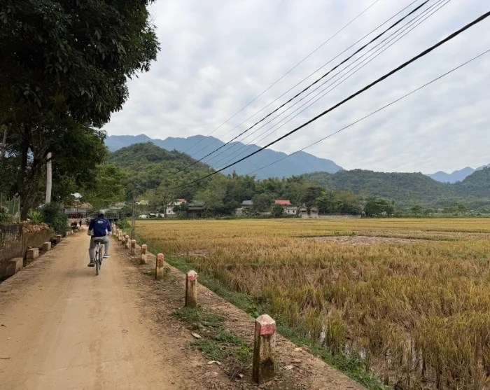 Na het ontbijt vertrekt u richting het district Gia Vien, waar de fietstocht van ongeveer 14 km vandaag begint. U stapt op de fiets en rijdt in een rustig tempo over smalle wegen, langs weelderige groene rijstvelden en lokale dorpen, op weg naar het Van Long natuurreservaat. Onderweg is er tijd voor fotostops, onder andere bij een lokale katholieke kerk, voordat u verder rijdt door het open landschap. De omgeving van Van Long staat bekend om de vredige moerassen, indrukwekkende kalksteenklifjes en een rijke vogelwereld – een prachtig decor voor uw fietstocht.