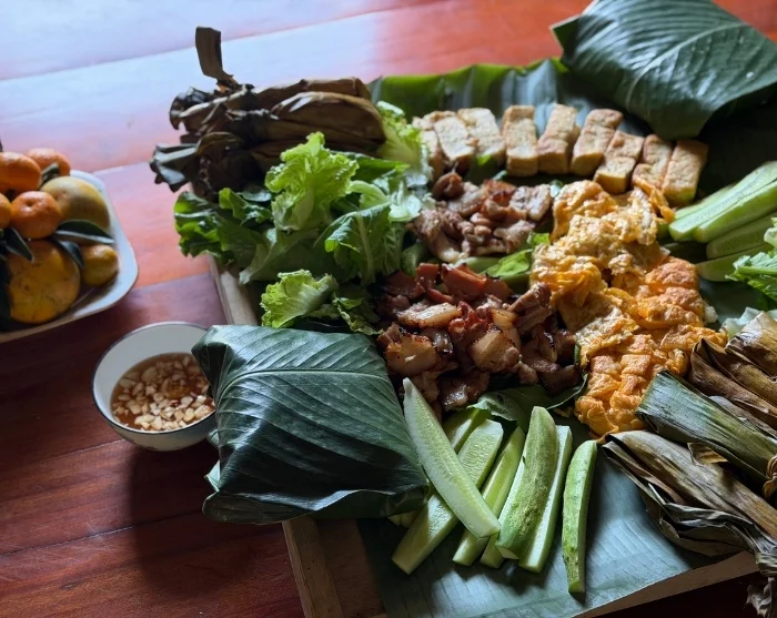 Na de boottocht bezoekt u een lokaal huis, waar u samen met uw gastheer en gastvrouw helpt bij het bereiden van traditionele gerechten. De lunch wordt geserveerd aan een mooi gedekte tafel vol lokale specialiteiten, die u in goed gezelschap geniet. Zo krijgt u een authentieke indruk van de culinaire cultuur in de regio. Er is ook tijd om met uw gastgezin te praten en meer te leren over het dagelijks leven, de cultuur en de tradities van de Muong.