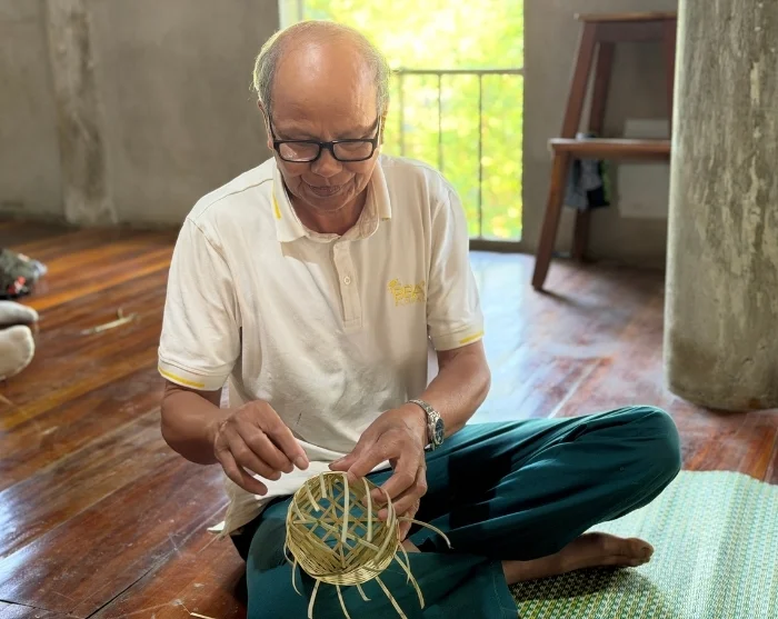 Vervolgens bezoekt u een ouder echtpaar en krijgt u een inkijkje in de traditionele ambachten van de Muong: weven en vlechten met bamboe, technieken die van generatie op generatie zijn doorgegeven. De bamboesoort ‘luong’ wordt onder andere gebruikt om manden, visvallen en matten te maken. Elk patroon en elke techniek weerspiegelt een stukje van het culturele erfgoed van de Muong. De producten zijn niet alleen duurzame alternatieven voor moderne materialen, maar ook unieke souvenirs. U krijgt bovendien de kans om zelf aan de slag te gaan en uw eigen kleine mandje te vlechten als herinnering aan dit bijzondere bezoek.