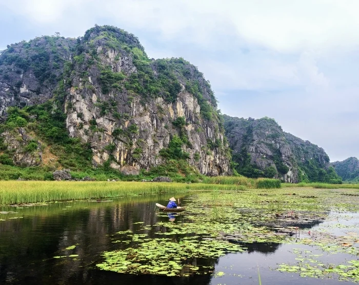 Vervolgens brengt de reis u naar Ninh Binh, dat vaak het “Ha Longbaai op het land” wordt genoemd. Hier fietst u door het weelderige platteland naar het Van Long-reservaat, bereidt u de lunch samen met een lokale familie en maakt u een rustige boottocht per sampan door de grotten van Trang An, langs imposante kalksteenrotsen.
