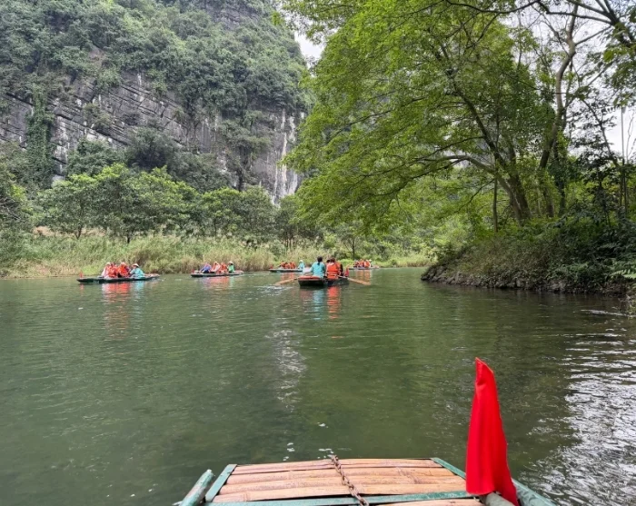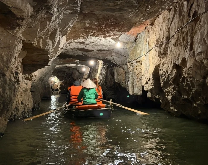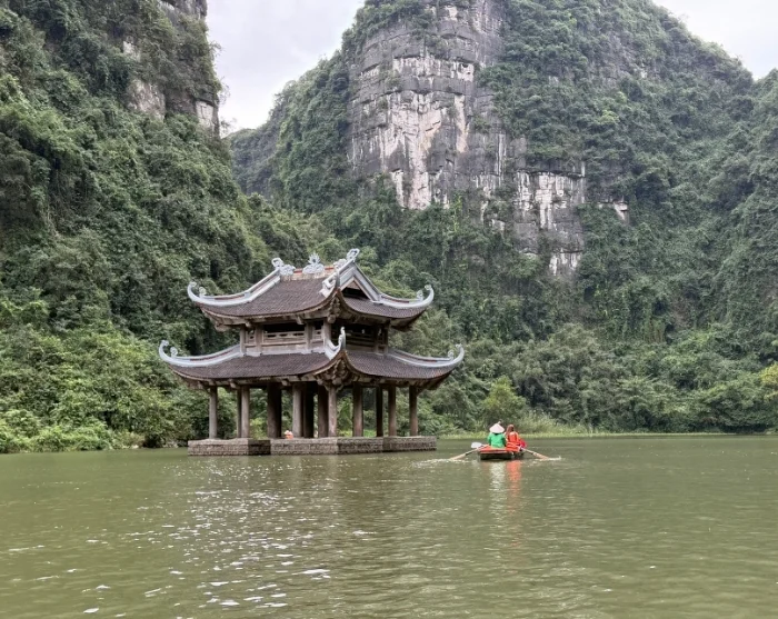 Na de lunch fietst u in korte tijd terug naar het vertrekpunt. Nadat u de fiets heeft ingeleverd, wordt u naar de Trang An grotten gebracht – een spectaculair natuurgebied met indrukwekkende rotsformaties en verborgen grotten. U stapt aan boord van een traditionele sampan en glijdt in alle rust over de kalme rivier door een netwerk van grotten, waaronder de Lam-grot, Vang-grot, Dai-grot en Thanh Truot-grot. Onderweg passeert u ook de tempels van Cao Son, Suoi Tien en Vu Lam, evenals Skull Island – de filmlocatie van de film “Kong: Skull Island” uit 2017.