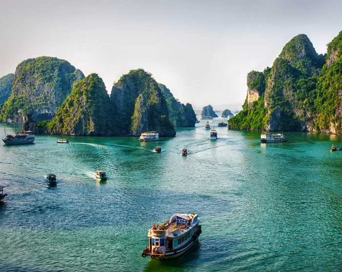 De Ha Longbaai is een van de meest indrukwekkende natuurwonderen van Vietnam. Hier rijzen honderden met smaragdgroen begroeide kalksteenrotsen steil omhoog uit de zee, waarvan de kleur in de loop van het jaar varieert van diepblauw tot jadegroen. Op het grootste eiland, Cat Ba, liggen verschillende dorpjes, terwijl op enkele kleinere eilanden nog gezellige vissersgemeenschappen te vinden zijn. Voor reizigers is de Ha Longbaai vooral een paradijselijk stukje natuur van wereldklasse; voor de Vietnamese bevolking is het bovendien een plek vol legendes over draken en heldendaden. Het natuurgebied beslaat zo’n 1.500 km² en werd in 1994 opgenomen op de UNESCO-werelderfgoedlijst.
