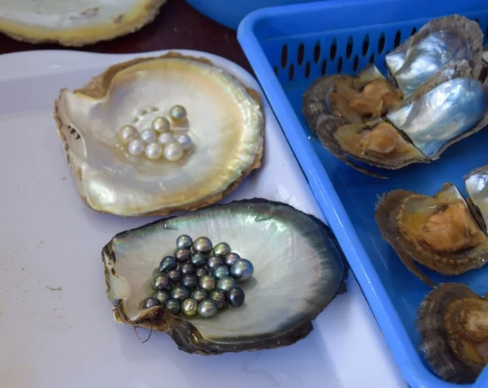 Later meert het schip aan bij een lokale parelkwekerij, waar u meer leert over de traditionele kunst van het kweken van parels.