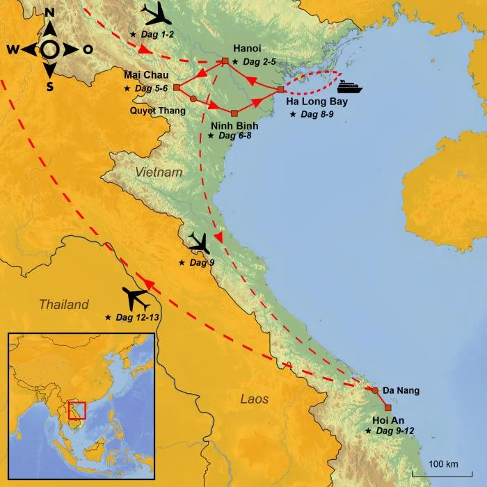 Beleef het bruisende stadsleven van Hanoi, fiets door de weelderige valleien van Mai Chau, vaar door de grotten van Trang An bij Ninh Binh en tussen de karstformaties in de Ha Long baai. De reis eindigt in het charmante Hoi An.