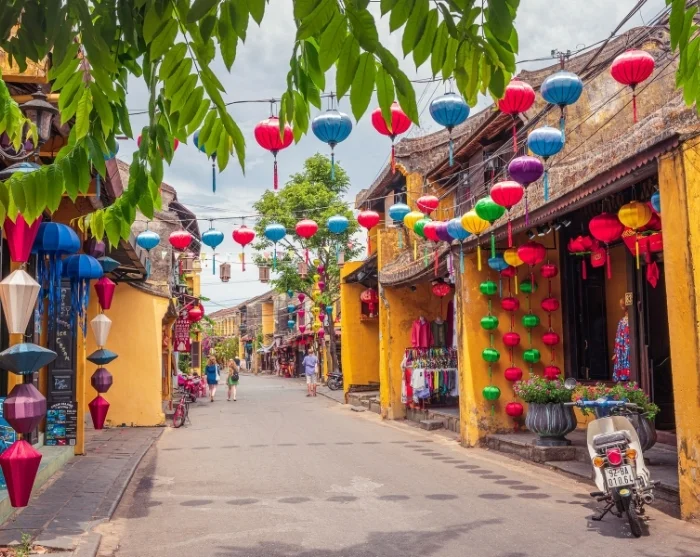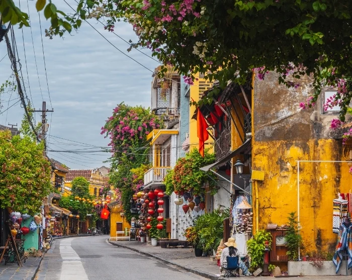 Achter de rivier ligt een doolhof van sfeervolle steegjes. Hier wacht een bonte mix van Japanse houten huizen, Chinese vergaderhuizen, Franse koloniale panden en karakteristieke koopmanshuizen. Slierten kleurrijke lantaarns hangen als slingers boven de straten en zorgen voor een bijzondere sfeer, vooral wanneer de avond valt. Winkels, streetfoodkraampjes, cafés en kleine restaurantjes liggen langs de straten en nodigen uit tot ontspannen momenten en nieuwsgierige ontdekkingen.