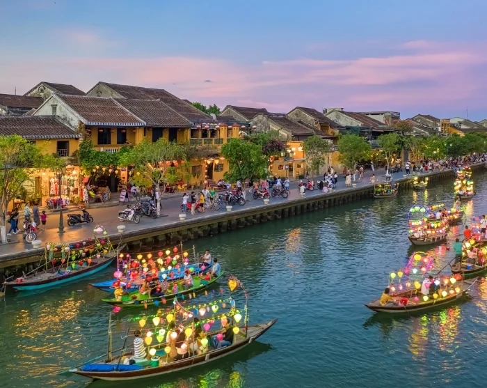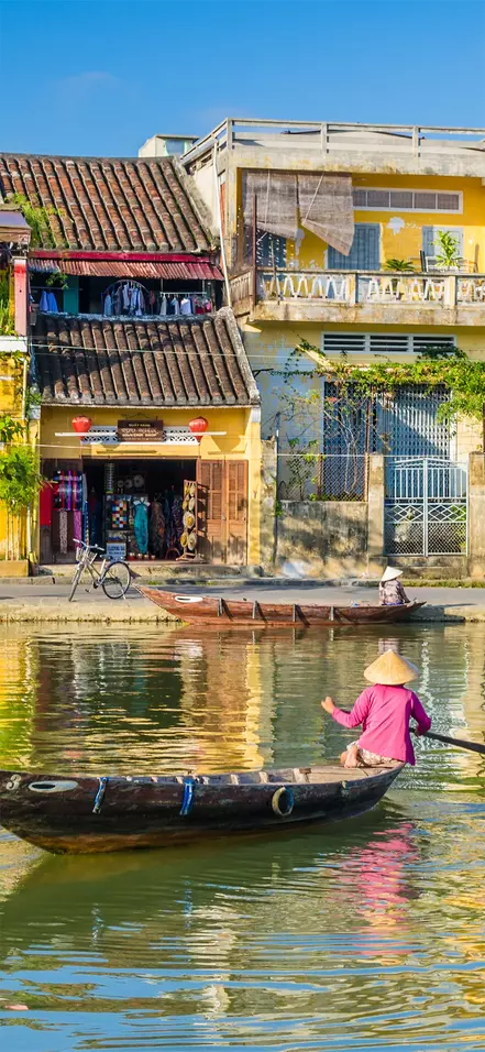 De Thu Bon-rivier stroomt door het hart van de stad, die in de 17e en 18e eeuw een bruisend knooppunt van internationale handel was. Tegenwoordig vormen de oevers een prachtige, serene achtergrond voor het dagelijks leven en voor de vele kleine bootjes die nog altijd over het water glijden.